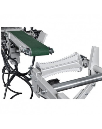 De aanvoerband is ook nog te combineren met een heftafel 5SSA400SH die het materiaal van de grond hydraulisch op werkhoogte brengt en via een transportrol richting de zaagmachine transporteert