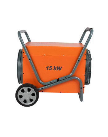 werkplaatskachel van 15000 Watt gemaakt van stevig metaal. Grote ruimtes, maar ook de garage of schuur zijn binnen enkele seconden prima op temperatuur dankzij een luchtverplaatsing van 1950 m3 per uur.