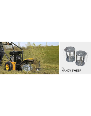 Handig goed en snel werkende verticuteermachine passend op alle Handy sweep veegmachines